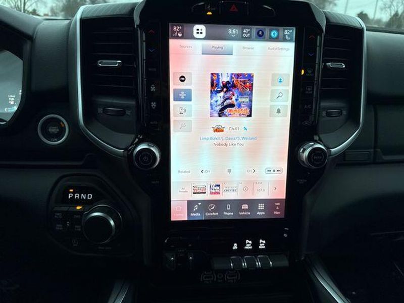 New Arrival! Forged Blue Metallic 115V Auxiliary Power Outlet, 115V Auxiliary Rear Power Outlet, 12'' Touchscreen Display, 2nd Row In Floor Storage Bins, 3 Rear Seat Head Restraints, 4 Way Front Headrests, 400W Inverter, 4G LTE Wi-Fi Hot Spot, 9 Amplified Speakers w/Subwoofer, Accent Color Door Handles, Accent Color Premium Power Mirrors, Accent Color Tailgate Handle, Air Conditioning ATC w/Dual Zone Control, Anti-Spin Differential Rear Axle, Apple CarPlay, Auto Power-Folding Mirrors, Auto-Dimming Exterior Driver Mirror, Auto-Dimming Rear-View Mirror, Big Horn Level 2 Equipment Group, Black Exterior Mirrors, Black Exterior Truck Badging, Black Headlamp Bezels, Black Interior Accents, Black Painted Exterior Mirrors Caps, Black Premium Power Mirrors, Black Tail Lamp Bezels, Body Color Fender Flares, Body Color Front Bumper, Body Color Rear Bumper w/Step Pads, Bucket Seats, Center Console Parts Module, Cluster 7.0'' TFT Color Display, Configurable Drive Mode, Connected Travel & Traffic Services, Connectivity - US/Canada, Convex Wide-Angle Exterior Mirror Insert, Deluxe Cloth Bucket Seats, Disassociated Touchscreen Display, Dual Exhaust w/Black Tips, Exterior Mirrors Courtesy Lamps, Exterior Mirrors w/Heating Element, Exterior Mirrors w/Supplemental Signals, Front Seat Back Map Pockets, Full Length Floor Console, Global Telematics Box Module (TBM), Glove Box Lamp, Google Android Auto, GPS Antenna Input, GPS Navigation, Grille Black Surround Black Mesh, HD Radio, Heated Front Seats, Heated Steering Wheel, Integrated Center Stack Radio, Integrated Voice Command w/Bluetooth, Leather Wrapped Steering Wheel, LED Dome Lamp w/On/Off Switch, LED Footwell Lighting, Manual Adjust 4-Way Front Passenger Seat, Media Hub w/2 Charge Only USBs, Night Edition, Overhead LED Lamps, Power 2-Way Driver Lumbar Adjust, Power Adjust 8-Way Driver Seat, Power Adjustable Pedals, Premium Overhead Console, Radio: Uconnect 5 Nav w/12.0'' Display, RAM Grille Badge - Black, Rear 60/40 Folding Seat, Rear Center Armrest, Rear Power Sliding Window, Rear Window Defroster, Remote Tailgate Release, Security Alarm, SiriusXM Radio Service, SiriusXM w/360L, Steering Wheel Mounted Audio Controls, Sun Visors w/Illuminated Vanity Mirrors, Universal Garage Door Opener, USB Host Flip, Wheels: 20'' x 9.0'' Aluminum Painted Clad, Wheels: 20'' x 9'' Aluminum Chrome Clad (WRK).